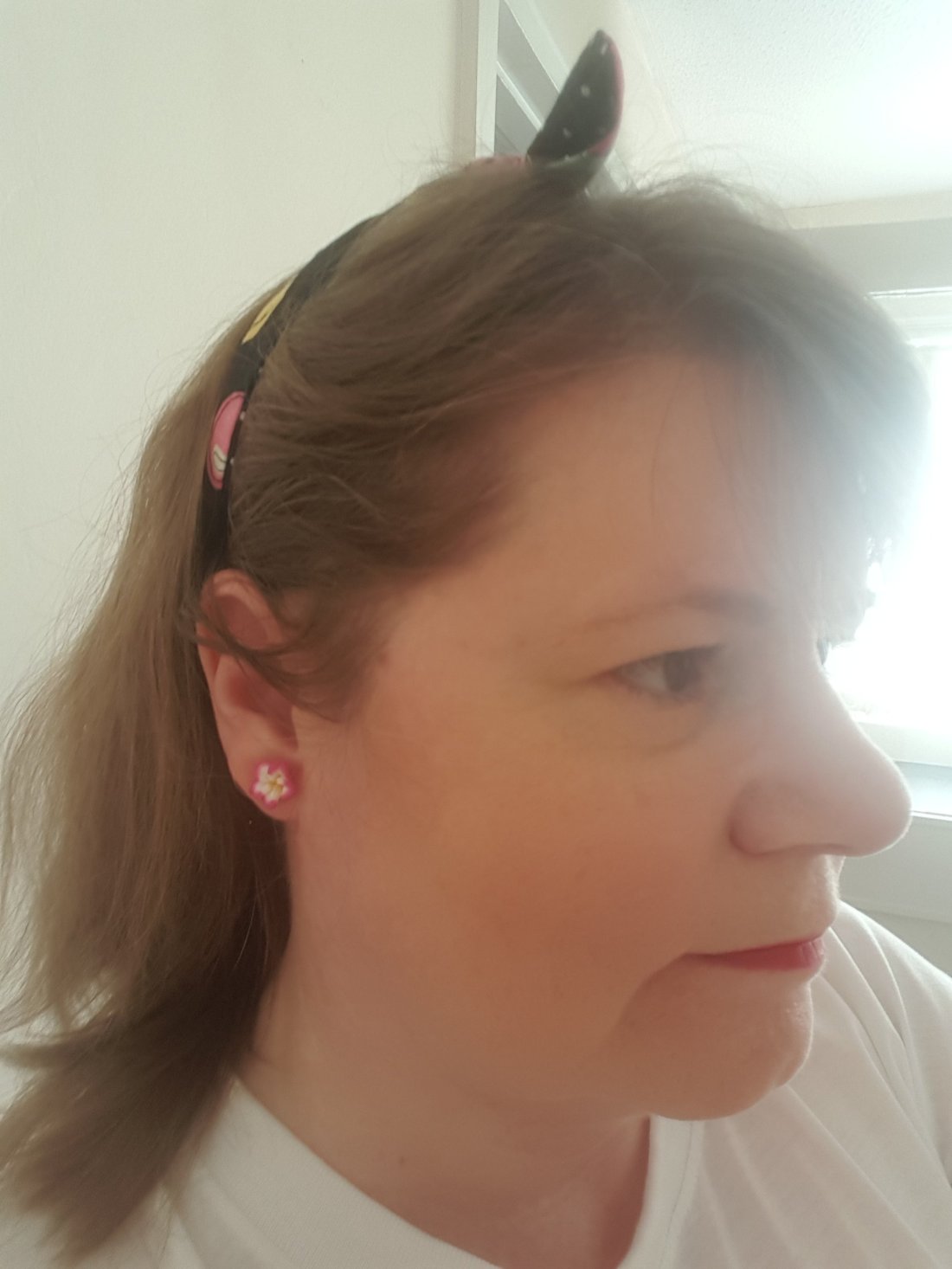 I have some Tropical flower earrings I have some lovely comments from people and my Tiki Lou t shirt.
