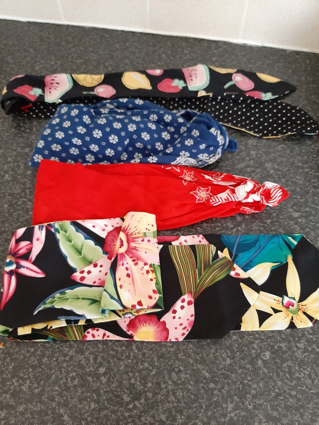 Blue and red bandanas bought at independent seller at York Festival of vintage