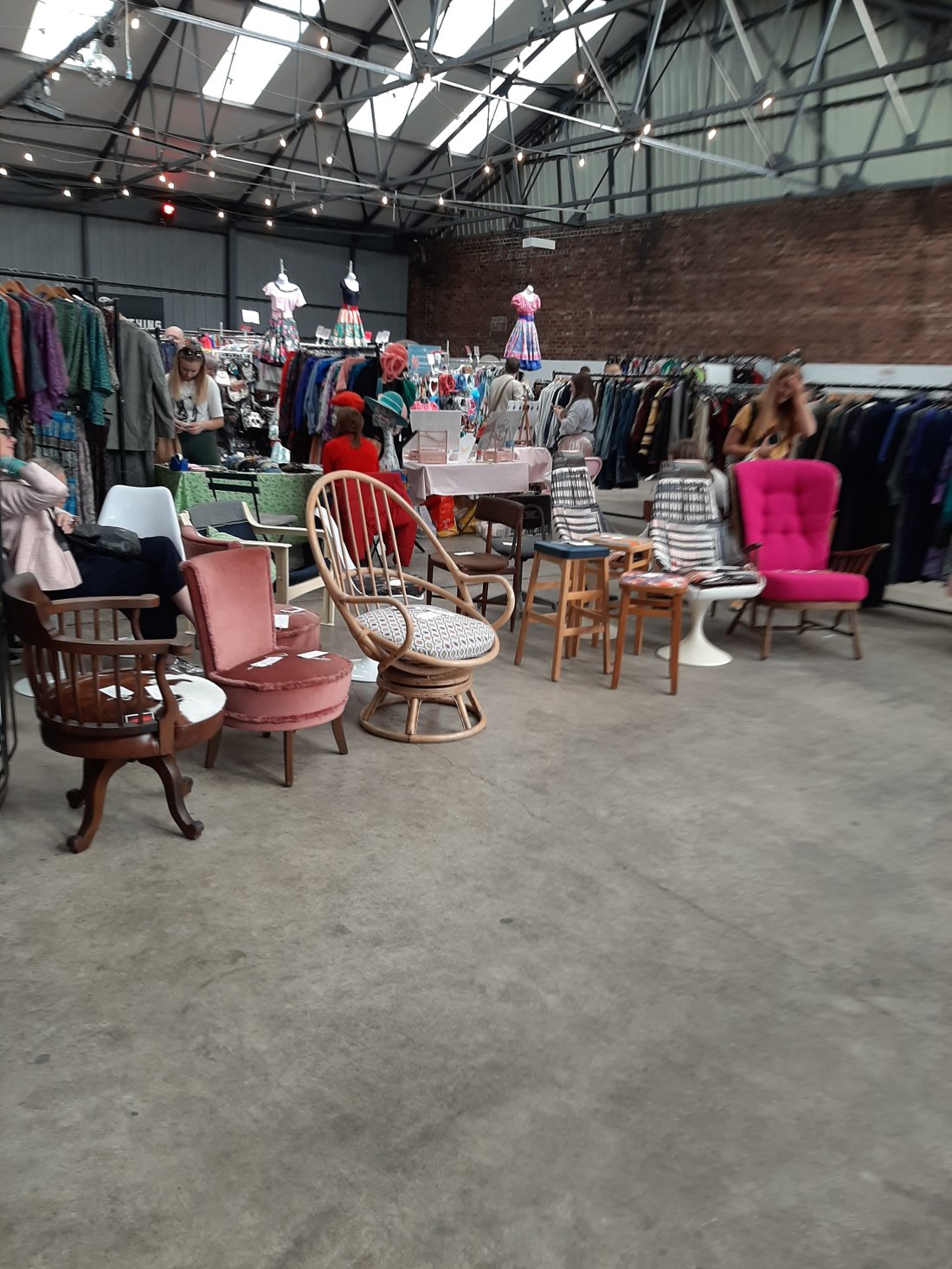 There were womens clothes both repro and vintage,mens clothes,bric a brac, in fact I spotted a commemorative tin with Prince Philip, the Queens husband on the front! There was also furniture on sale a collection of chairs.